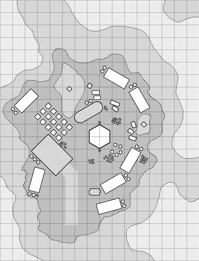 Square = 50 feet; Change in shade = 20 feet elevation change (Lighter is higher)
